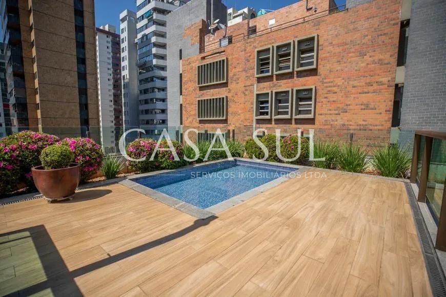 APARTAMENTO: Cobertura linear, ocupa o último pavimento todo, possui 336,28 m² de área, possui ampla sala com piso em mármore, lavabo, varanda, área externa descoberta com piscina, jardins e churrasqueira, pisos em granito.