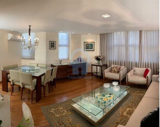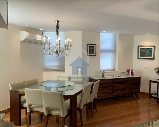 •São 02 salas, jantar e estar muito espaçosa e com piso em tábua corrida.•São 04 quartos transformado em 03 suítes com piso em tábua corridae armários.•Cozinha ampla com armários.•Dependência completa de empregada com espaçosa e ampla lavandeiria.• 02 vagas de garagem.•02 Elevadores.•Localização privilegiada.•Jardins.Obs.: O valor informado do IPTU é Anual.