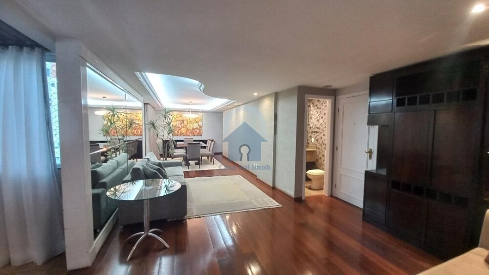 Amplo apartamentocom 4 quartos, sendo 2 suítes, e 5 banheiros no total.
