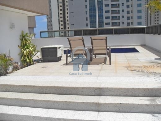 2º Nível: Escada em granito; sala com piso em porcelanato; 1 suíte com piso em laminado; banho com piso em porcelanato, bancadas em granito, armário, box e espelhos; varanda com espaço gourmet; bancada da pia em granito; churrasqueira; banho com piso e bancada em granito, armário e box blindex; sauna; área de lazer coberta e descoberta; piscina; vistas definitiva.